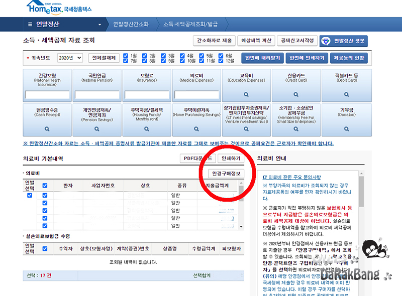세액공제 자료 조회를 순차적으로 하다 보면