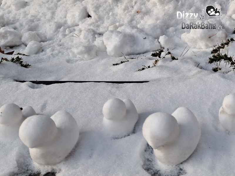 나란히 나란히 줄지어 있는 귀여운 눈오리들이다.