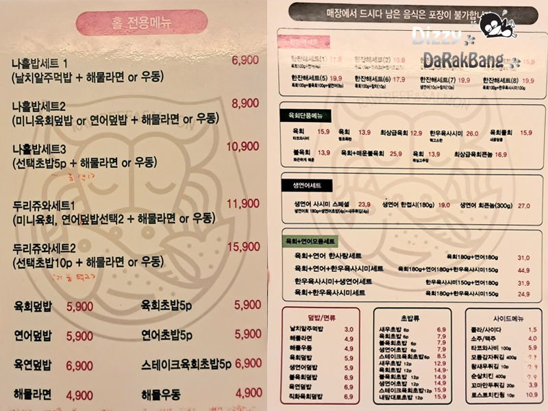 여는 육회란 연어다 사가정점은 아직 존재합니다.