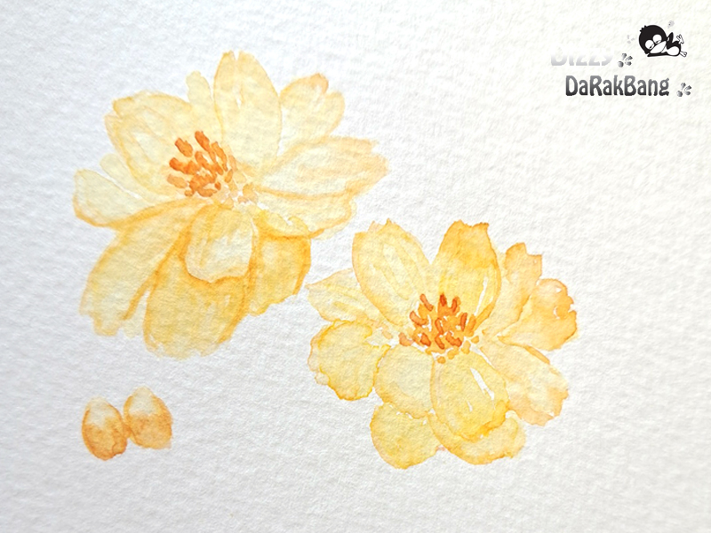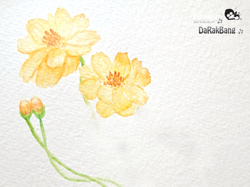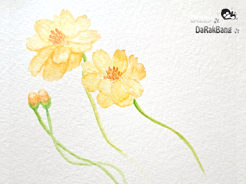 수채화 꽃 코스모스 꽃술도 진하게 표현해 주고요