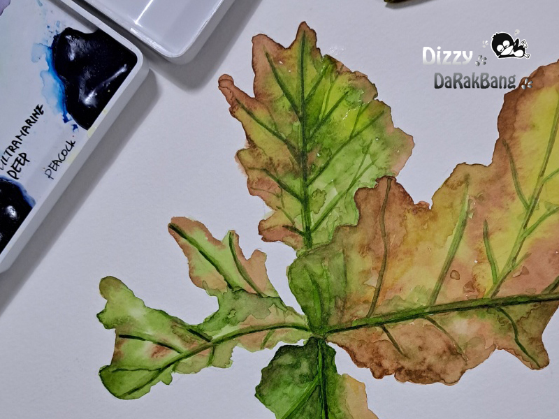 그렇게 그렸던 나뭇잎에 색을 입혀봤습니다.
